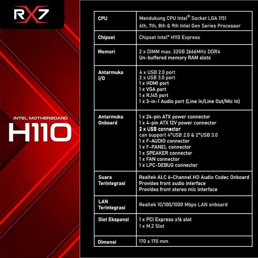 Paket Mainboard RX7 H110 Core i3/i5 Gen 6 - Mobo Socket LGA1151 INTEL DDR4 Support Nvme - Corei3-6100/i5-6500 -Free Fan