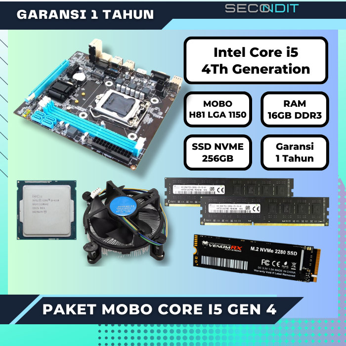 PAKET MOTHERBOARD H81 CORE I5 4570 4590 RAM DDR3 16GB SSD NVME 256GB GARANSI 1 TAHUN