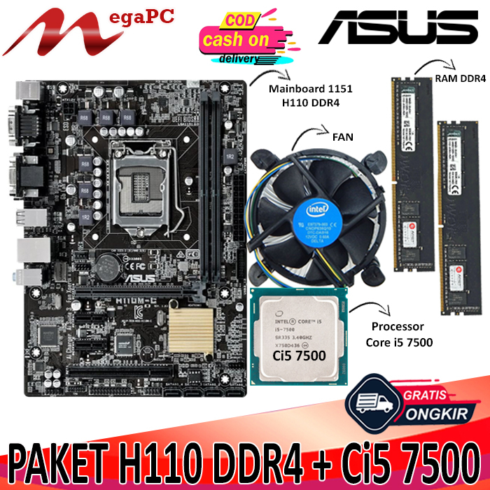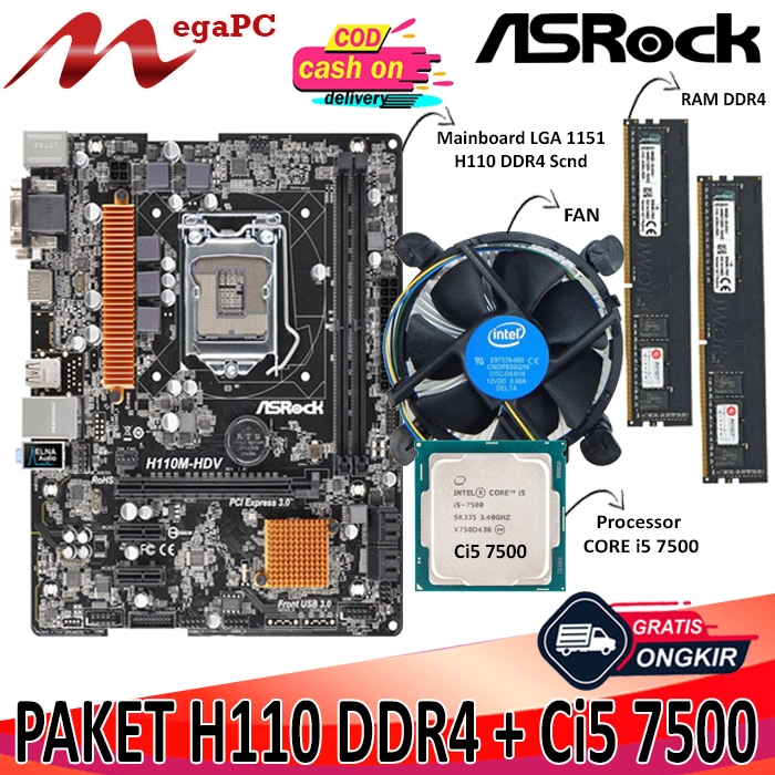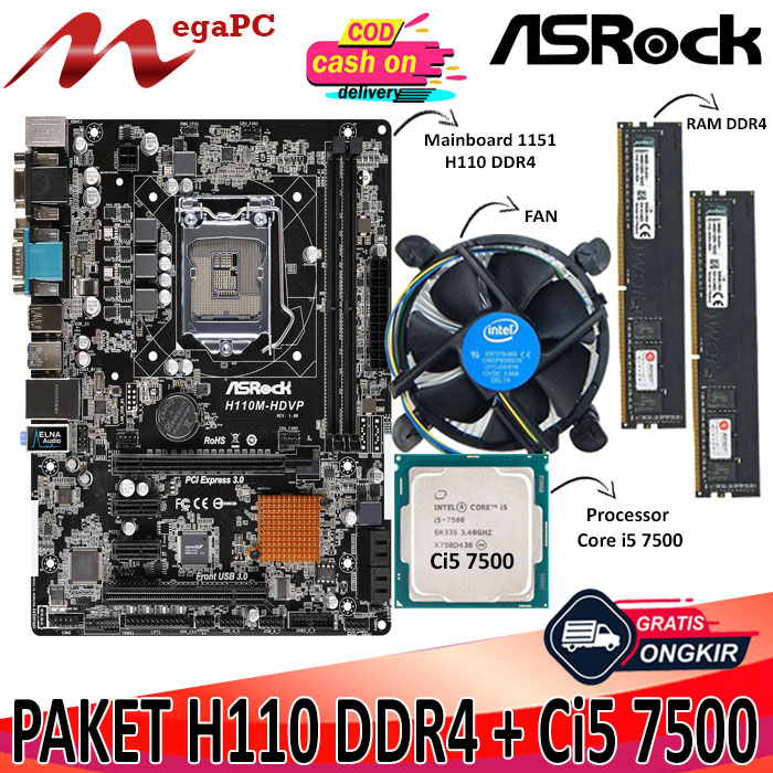 Paket Mainboard LGA 1151 H110 DDR4 + Core i5 7400 / 7500 + FAN + RAM