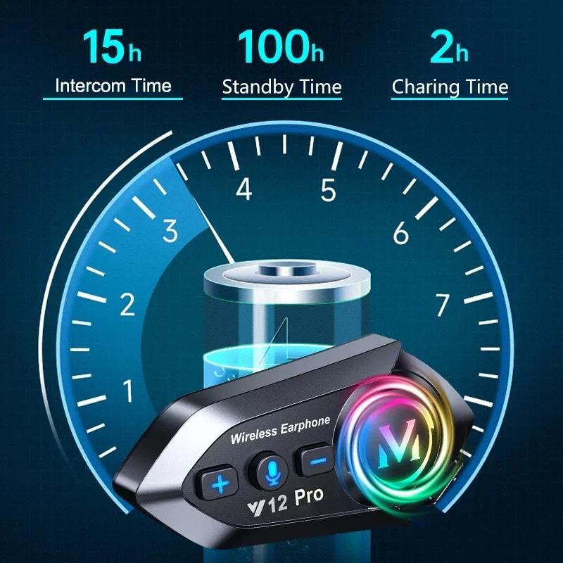 Y12 Pro Intercom Helm Motorcycle V5.4 500M For 2 Rider Compatibility Other Brands IPX6 Waterproof Hands Free Call Interk