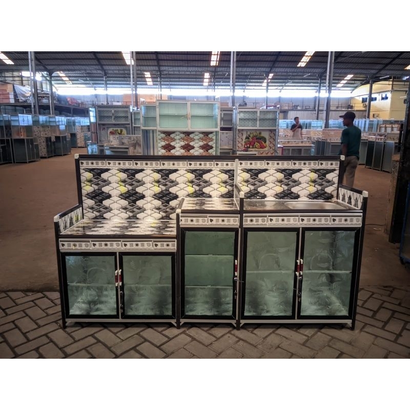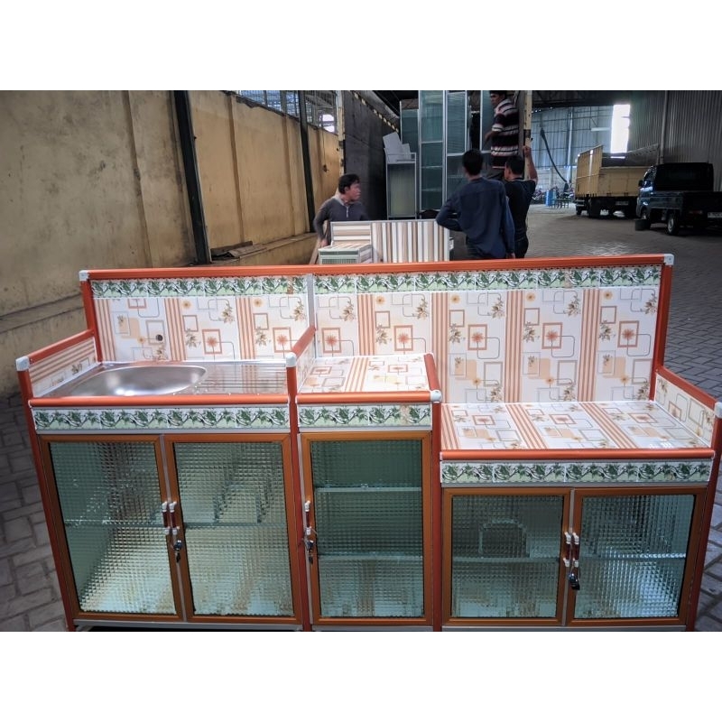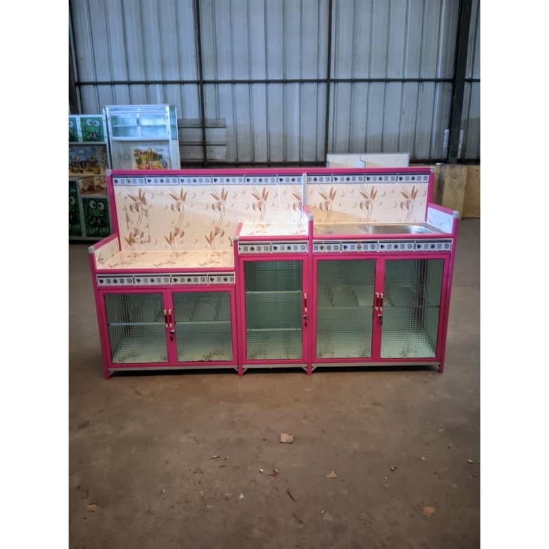 meja kompor 2 tungku Meja Kompor Wastafel 5 Pintu Keramik Aluminium terlaris