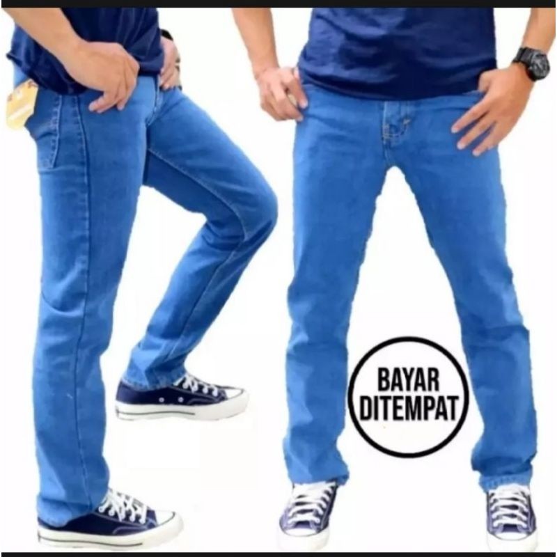 Celana Jeans Panjang Pria Standar 27 - 38 Reguler Basic Terbaru Hitam Blue Stone Denim
