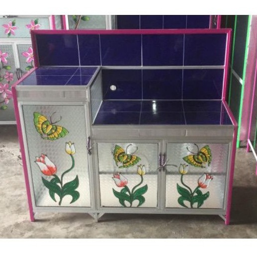meja kompor 2 tungku Meja kompor aluminium kaca meja magic com 3 pintu mc terlaris