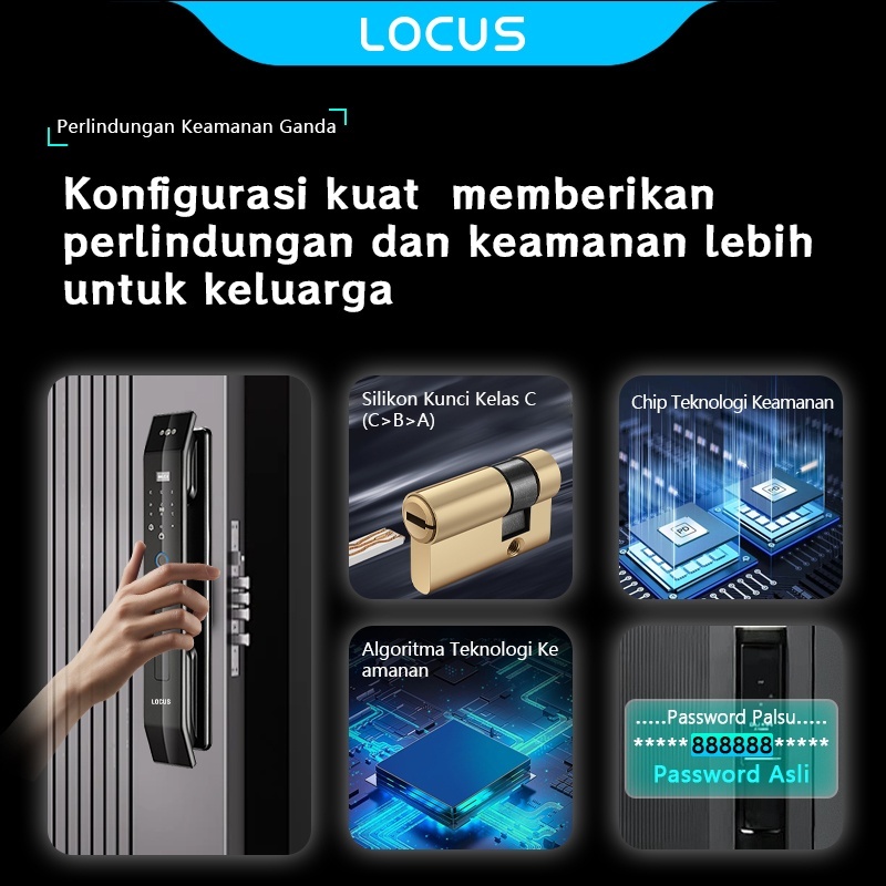Locus V3 Fitur Pengenalan Wajah Smart Door Lock, Pemantauan Visual, Kunci Pintu Digital Peephole Cerdas, Kunci Pintu Sid