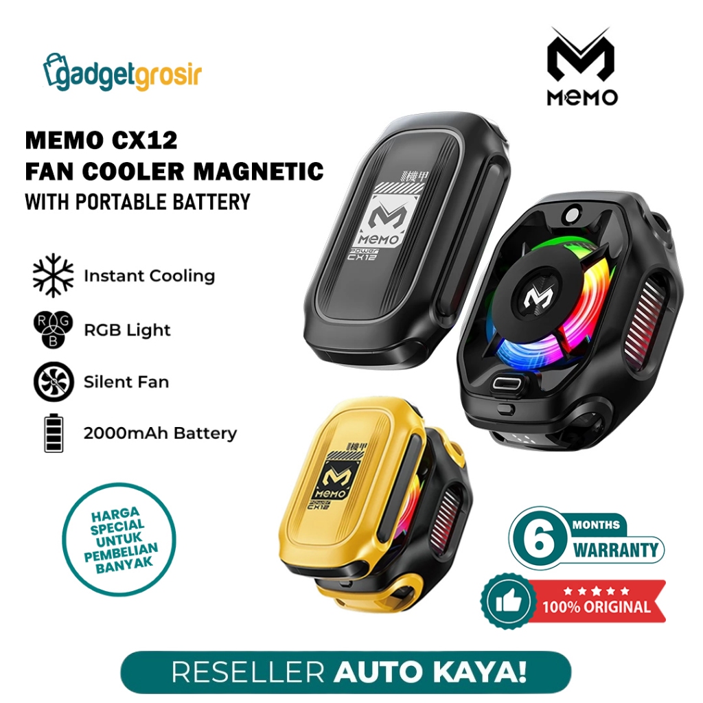 MEMO CX12 COOLING FAN RADIATOR MAGNETIC WITH PORTABLE BATTERY 2000MAH RECHARGEABLE PHONE COOLER HP TAB FOR GAMING LIVE STREAMING FANCOOLER ORIGINAL GARANSI