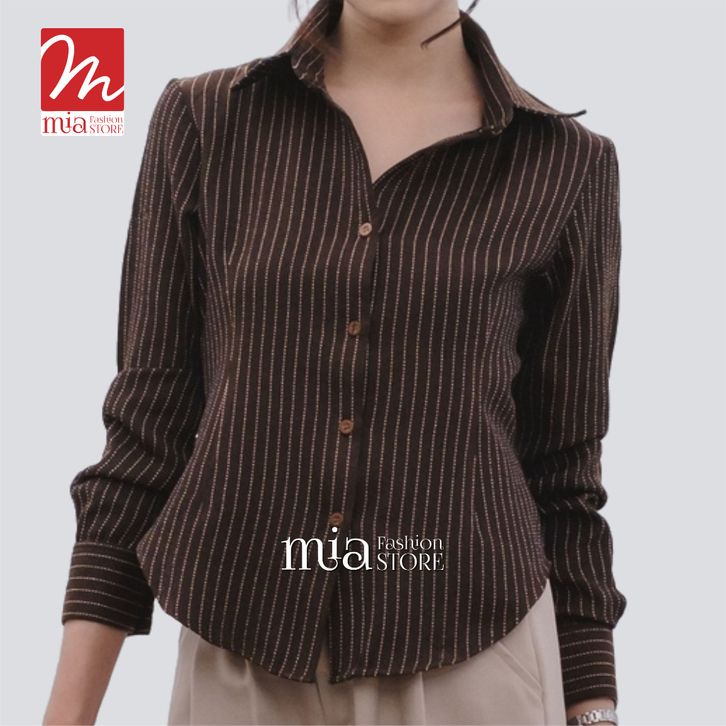 Kemeja Luna Stripe Longsleeve Atasan Wanita Salur Terbaru