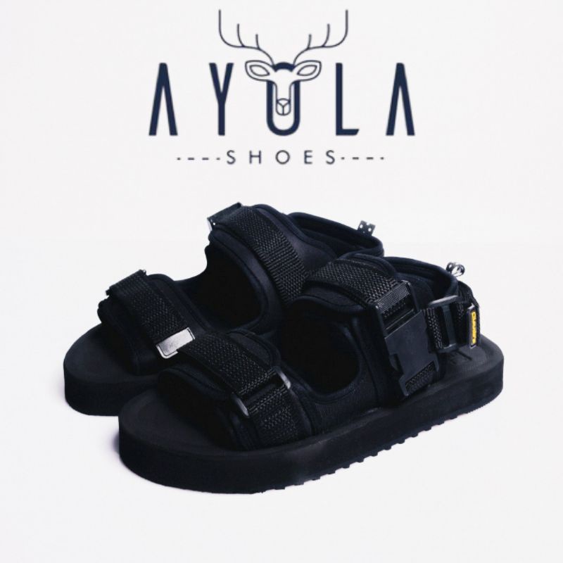SANDAL GUNUNG PRIA WANITA CASUAL FULL BLACK AYOLA SHOES