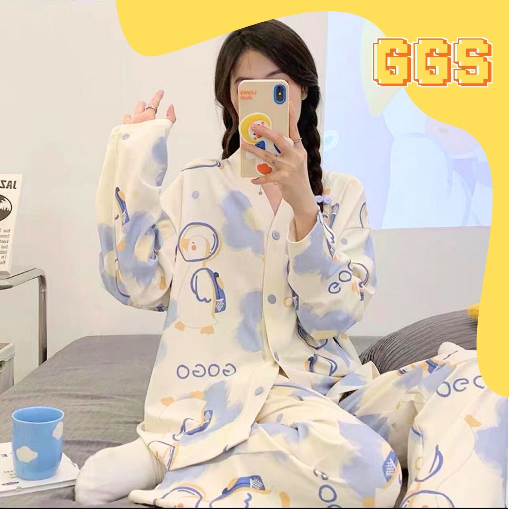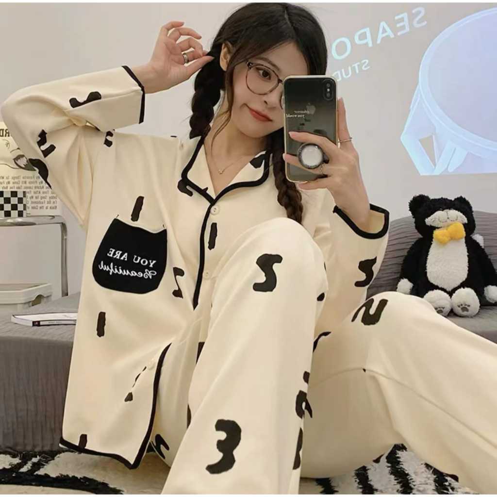 Baju Tidur Set Wanita Dewasa Remaja Setelan Piyama Perempuan Model Kemeja Kancing Lengan Panjang Celana Panjang Motif