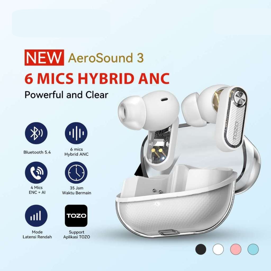 [Mall] (New Arrival) Tozo Aerosound3 Macaron Smart 6 Mics Hybrid ANC And 4 Mics ENC + AI Clear Calls BASS+ Bluetooth 5.4