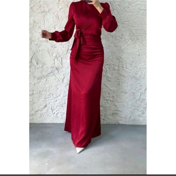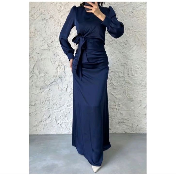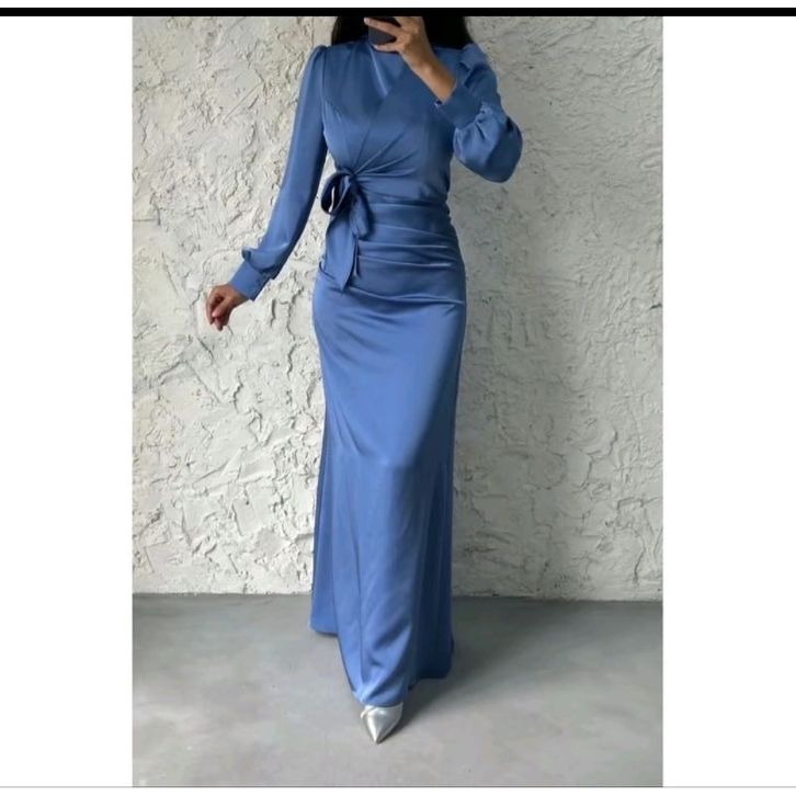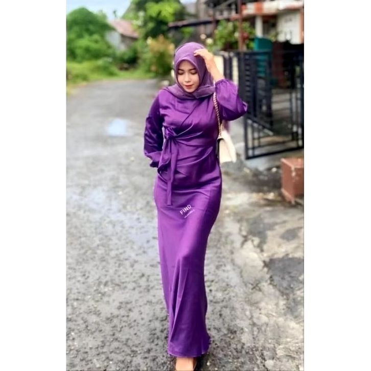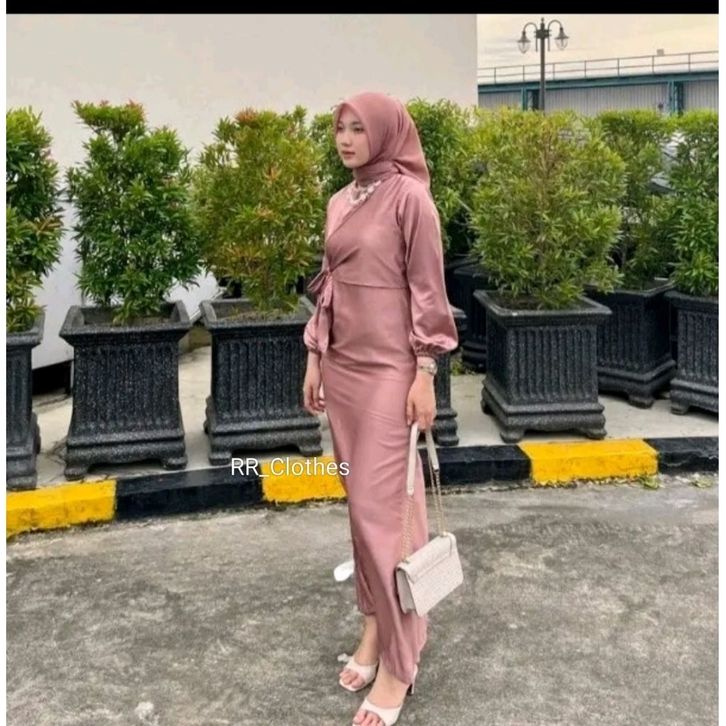 dyra dress-satin silk premium-gaun pesta bridesmaid kondang lamaran lebaran modern terbaru muslim panjang