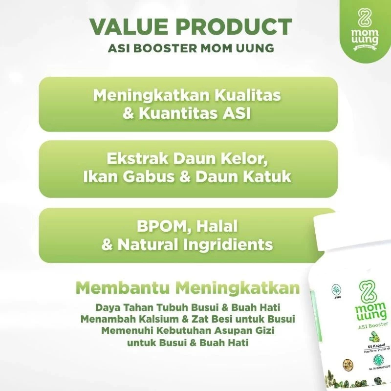 Obat Obatan Herbal Tradisional Mom Uung ASI Booster 30 dan 60 Kapsul Fenugreek Free / Pelancar ASI HALAL BPOM Mom Uung