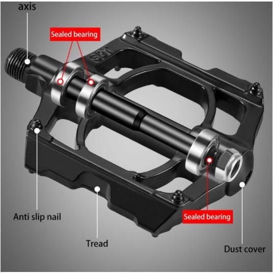 Pedal Bearing dan 4 Bering PEDAL BEARING Sepeda Gunung MTB Lipat Bearing Alloy Anti Slip Loncer Tapak Lebar Promend