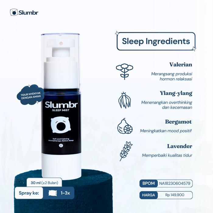 Slumbr Sleep Mist - Aromatherapy Linen Spray untuk Tidur dan Relaksasi BPOM| Natural Essential Oil