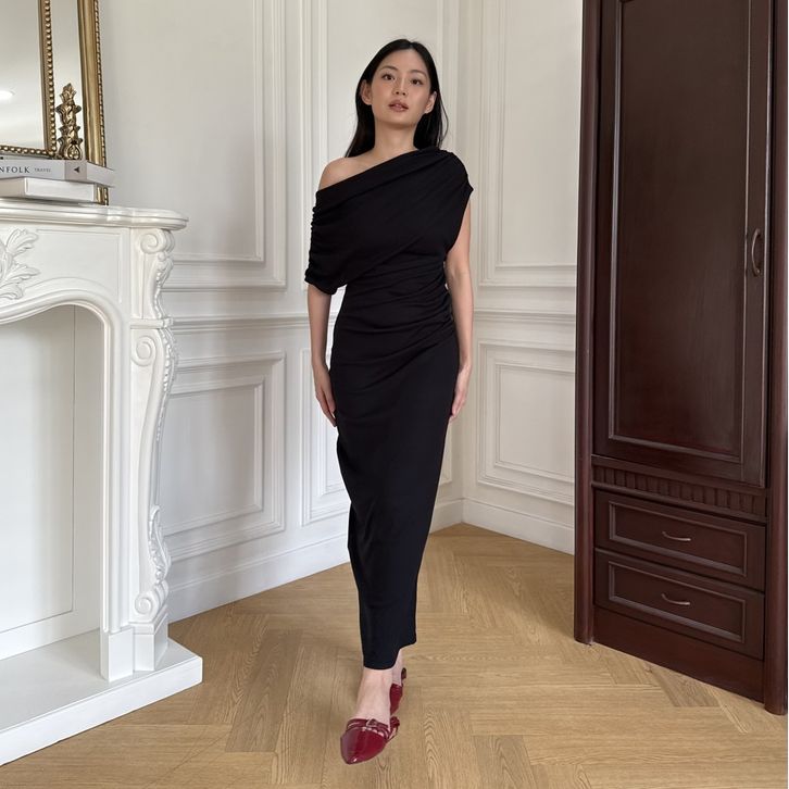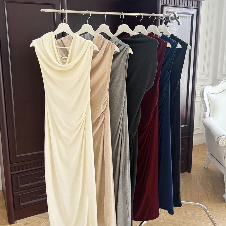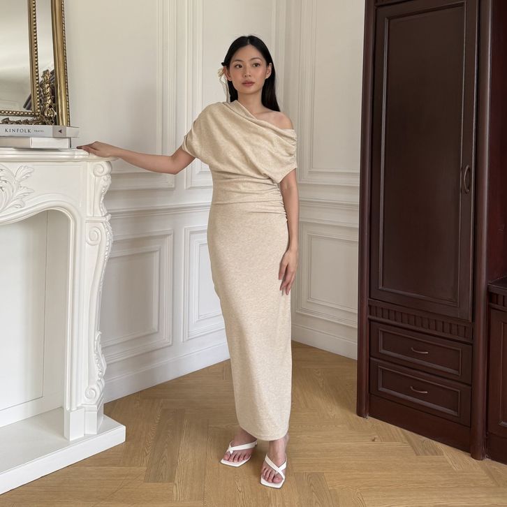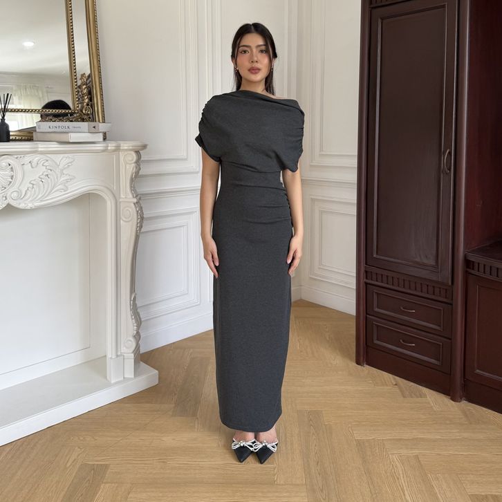 omicron dress basic dress panjang wanita rib knit basic terusan maxi dress korean basic long dress