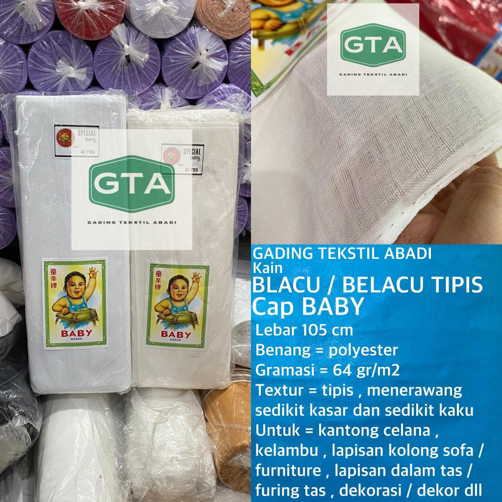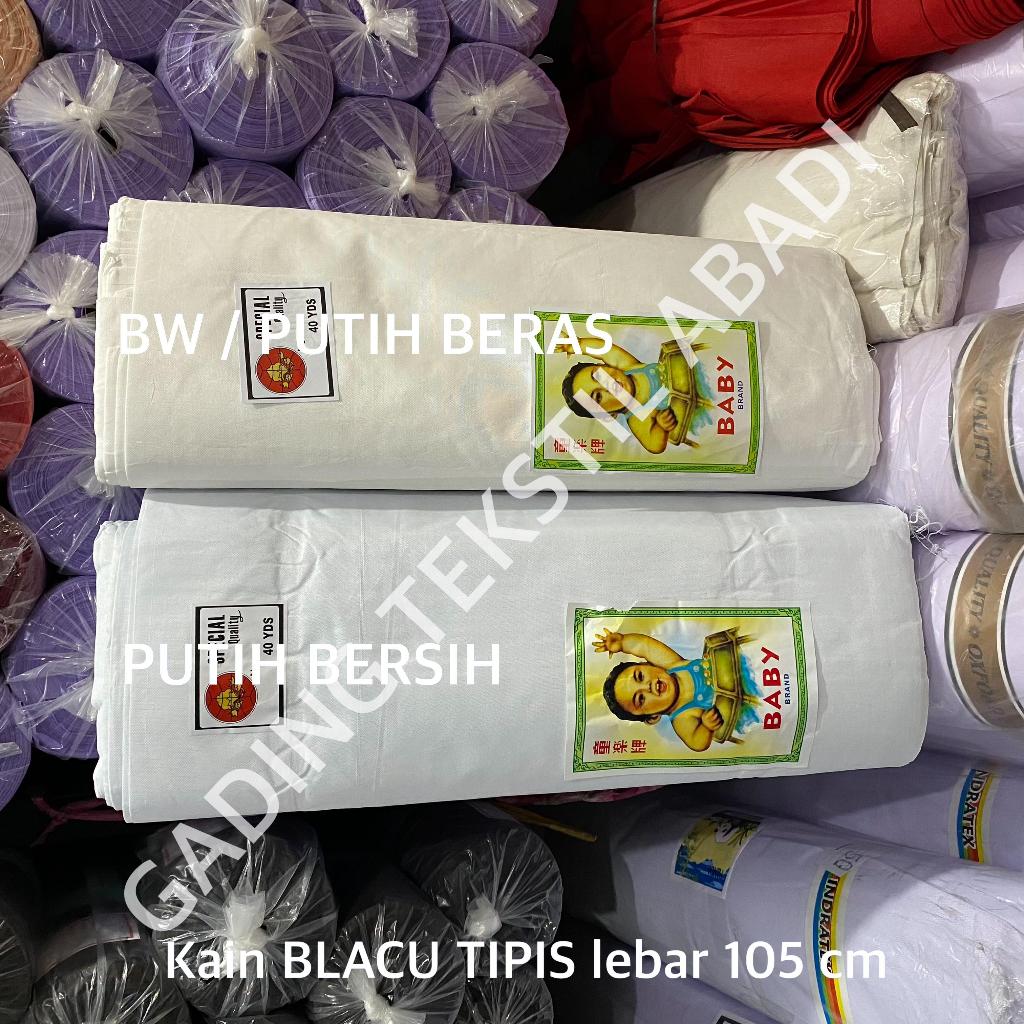 ( per 1 roll ) KAIN BELACU TIPIS cap BABY BLACU LEBAR 105 CM warna putih ECERAN BAHAN KANTONG SOVENIR LAPISAN FURNITURE