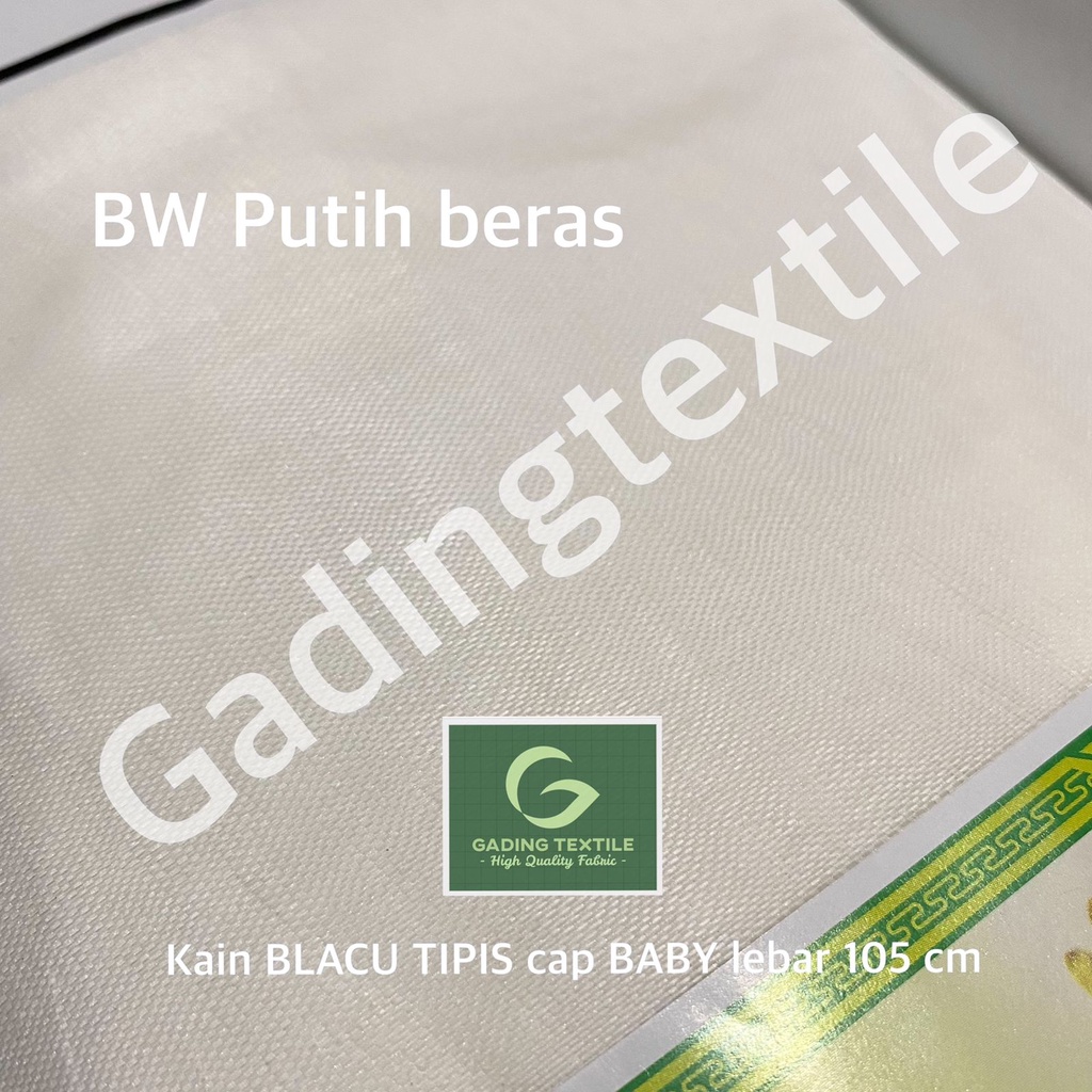 ( per 1 roll ) kain BELACU tipis BLACU cap BABY warna BW putih bersih lebar 105 cm rollan polyester bahan kantong celana