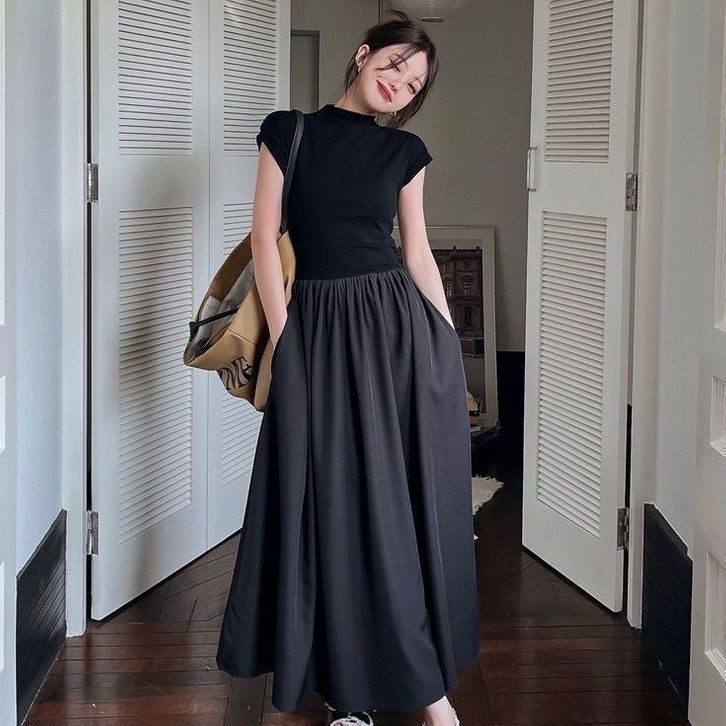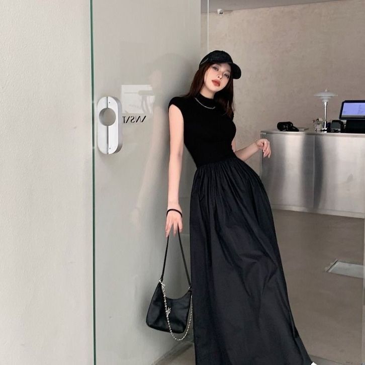 gaun gaun hitam kelas atas gaun wanita gaya korea desain ceruk gaun panjang pelangsing pinggang gaya hepburn prancis