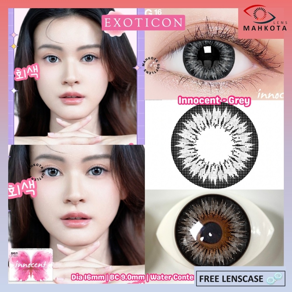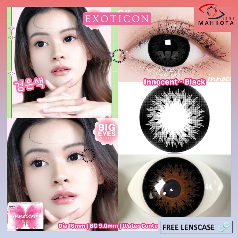 SOFTLENS X2 INNOCENT NORMAL & MINUS (-0.50 S/D -6.00) X2 EXOTICON DIA 16MM WARNA/ FREE LENSCASE / GREY BLACK BROWN BLUE / SOFTLEN SOFLEN SOFLENS