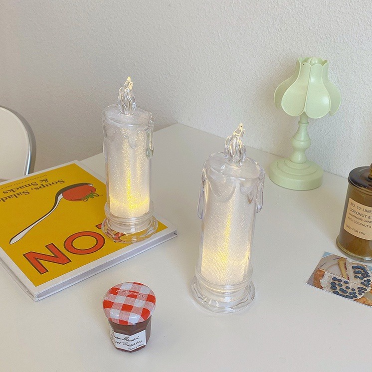 STT Lilin Led Candles Lilin Mini Elektrik Lampu Tidur Lilin LED Light Candle Electronic Lamp With Base Transparent Party