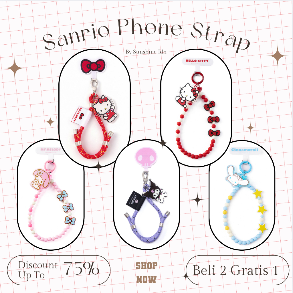 JAPAN ORIGINAL SANRIO Phone Strap Aesthetic Gantungan Hp Lucu Tali Pink Lanyard Aesthetic Gelang