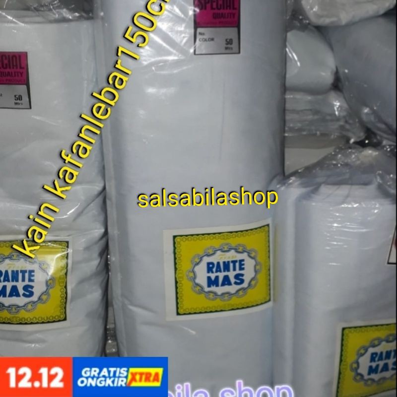 kain kafan rol lebar150cm panjang 50mtr untuk 6 jenazah kain mori blacu putih 1rol 50m lebar 150cm
