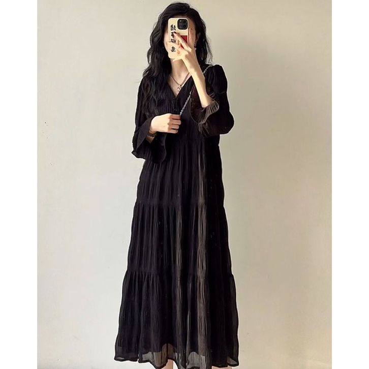 fashion baru gaya sederhana dress panjang sifon dress wanita korea modern