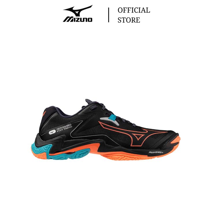 TERLARIS MIZUNO SEPATU VOLLEY WAVE LIGHTNING Z8-BLACK/NEON FLAME/PEACOCK BLUE MIZV1GA240006