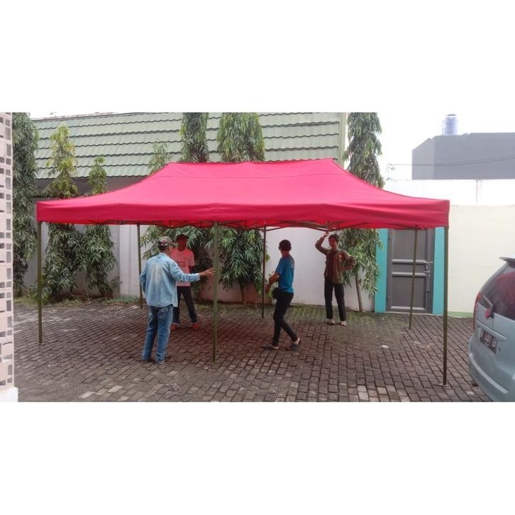 Tenda lipat matic super premium ukuran 3x6 atap warna hitam pakai dinding 3 sisi ket besi 1,4 water proof