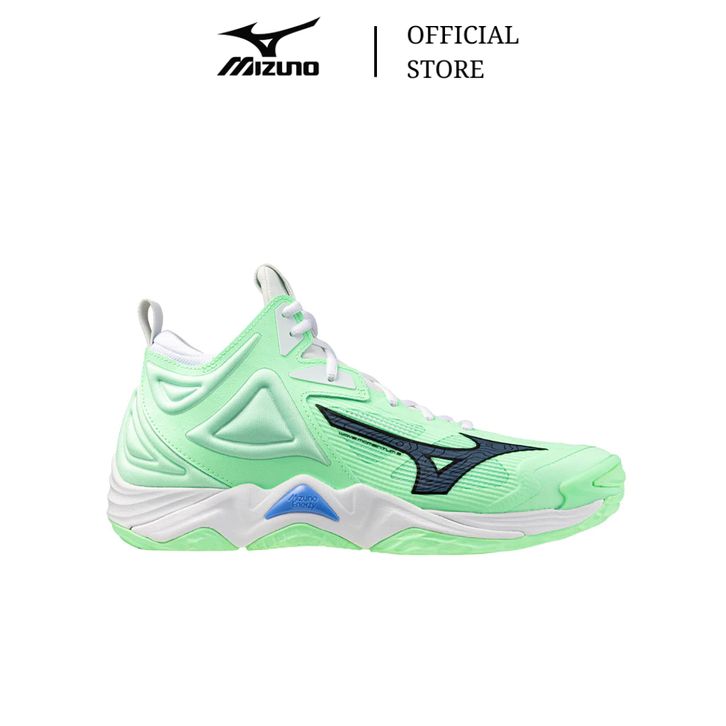 TERLARIS MIZUNO SEPATU VOLLEY WAVE MOMENTUM 3 MID-NEO MINT/BLACK/FRONTIER BLUE MIZV1GA231787