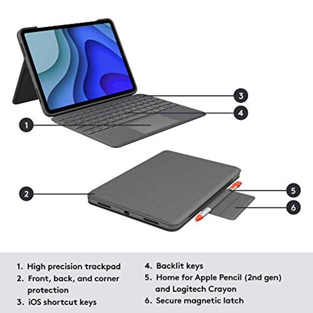 iPad Pro 11 inch 4th gen M2 2022 & 3rd gen M1 2021 & 2nd gen 2020 Logitech Folio Touch Keyboard