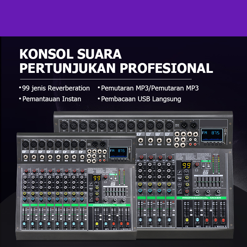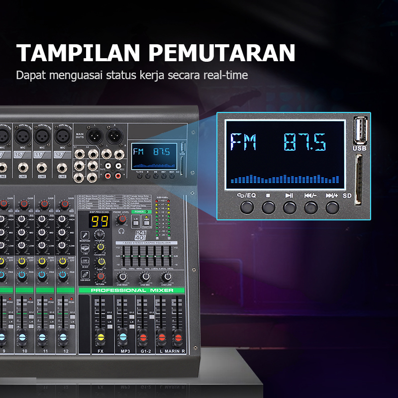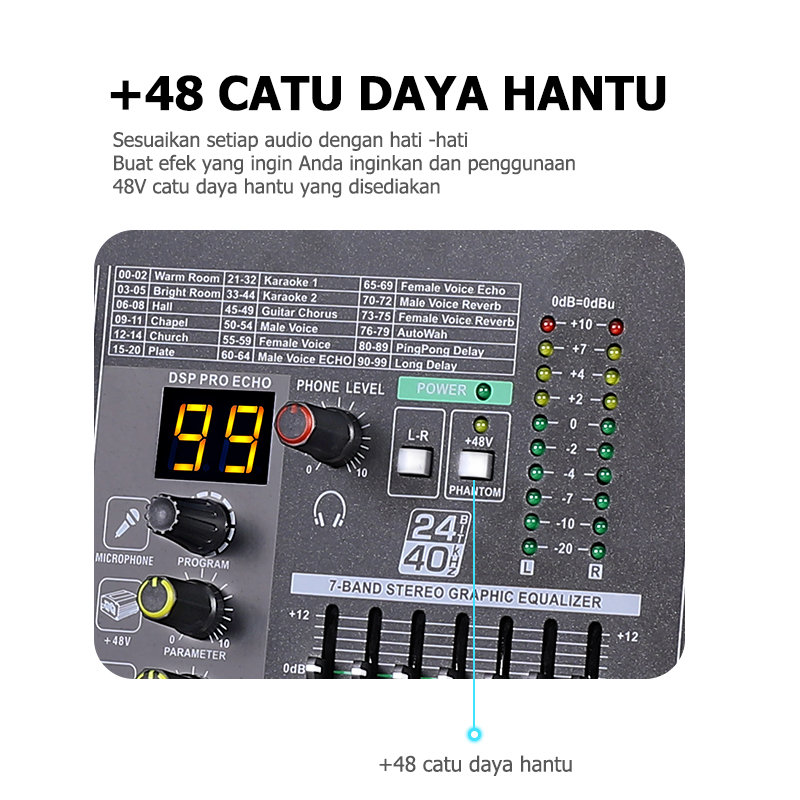 Mixer Audio,Mixer Karaoke,Pencampur Audio,built-in 7-band EQ,Bawaan Memiliki phantom power 48v,USB/SD/Bluetooth