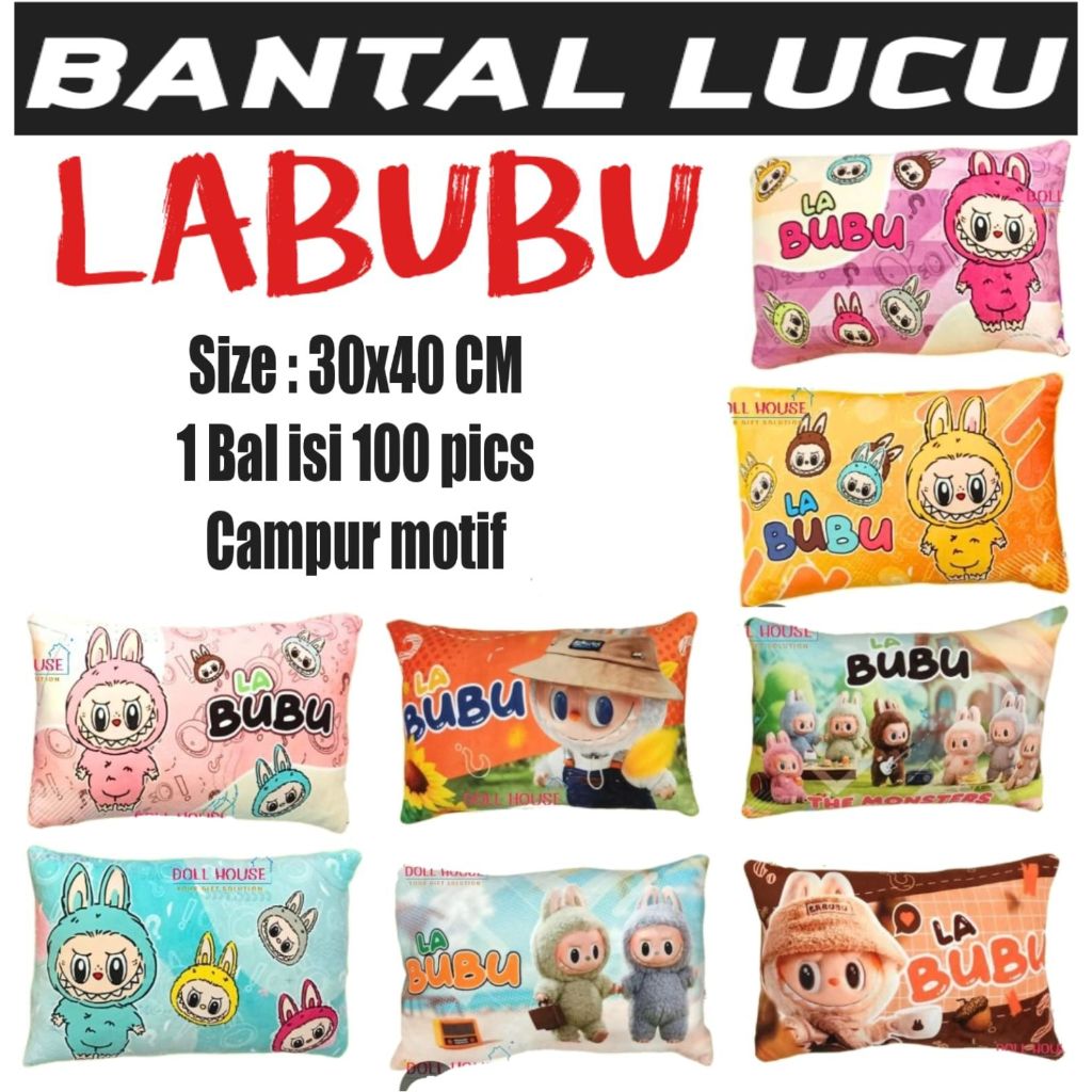 Bantal Tidur Anak Motif Labubu Ukuran 30x40 cm Motif Labubu The Monsters Exciting Macaron