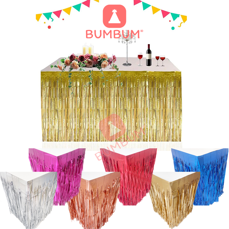 Foil Table Fringe Tirai Meja Rumbai Doff 0,75x3 M Dekorasi Ulang Tahun