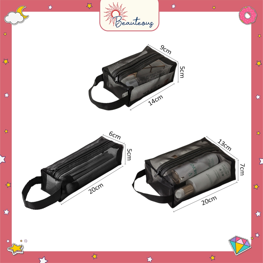 POUCH PENYIMPANAN MAKE UP ALAT MANDI TRAVEL KIT TRANSPARAN ORGANIZER DOMPET ALAT TULIS SERBAGUNA