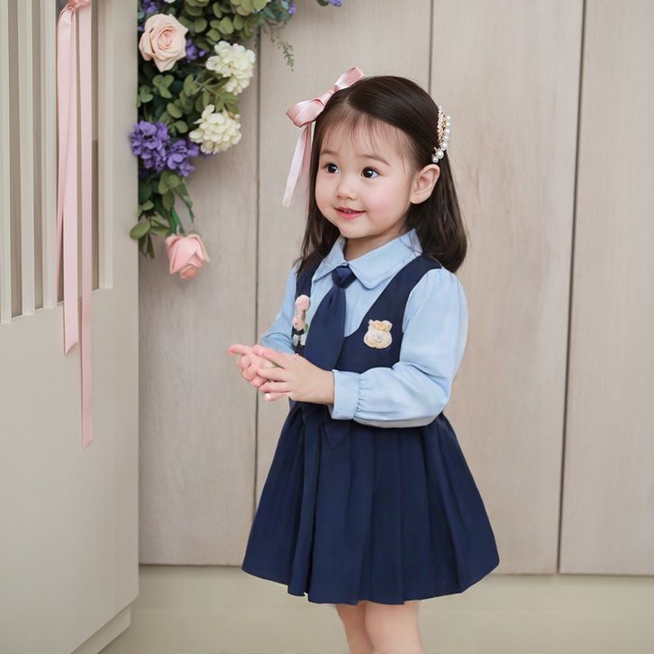2 - 5 Tahun | Dress Chun Cha Drees Korea Style Anak Perempuan Dress Lengan Panjang Dress Rompi Overal Baju Overal Anak C