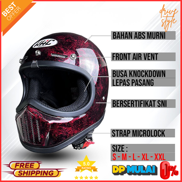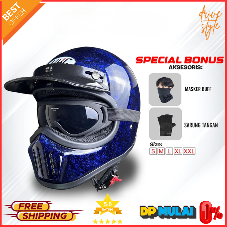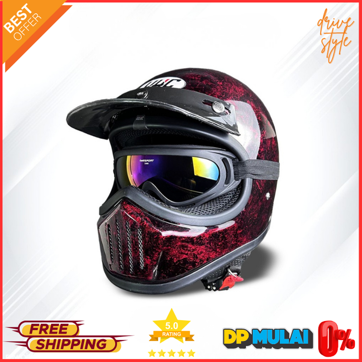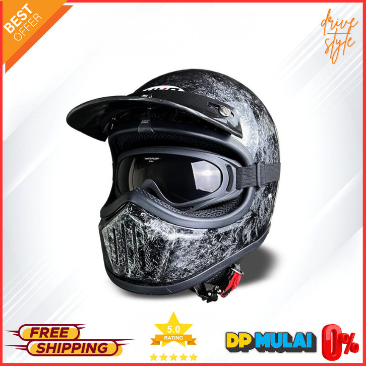 Helm Cakil Motif Fullface Pet Gogle FREE ST+Buff MASKER