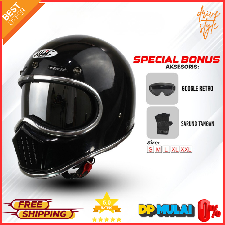Helm Cakil Original Full Face List Chrome Inner Visor FREE GOGLE+ST
