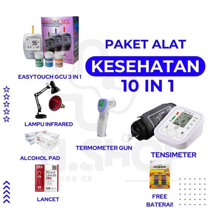 Paket Lengkap Alat Kesehatan PREMIUM 8 in 1 / Tensimeter / Oxymeter / Termogun / GCU Easy Touch 3 in 1 / Alat Cek