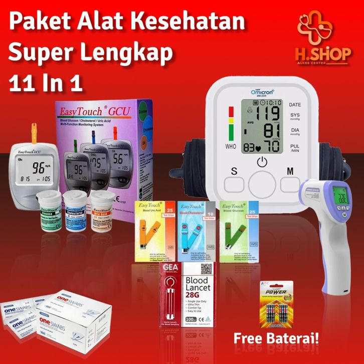 Paket Lengkap Alat Kesehatan PREMIUM 9 IN 1 free TERMOGUN / Tensimeter Digital / GCU 3 in 1 Easy Touch / Oxymeter