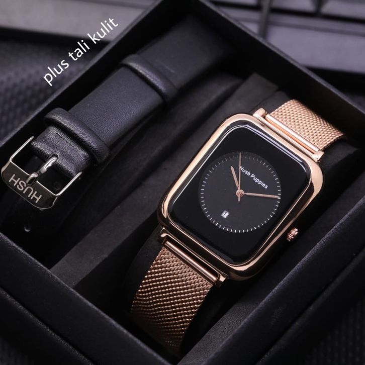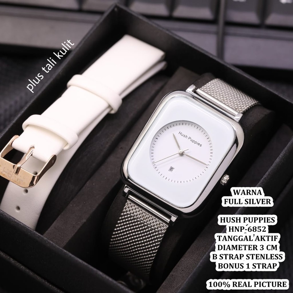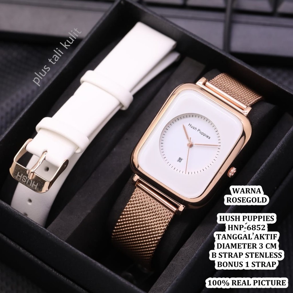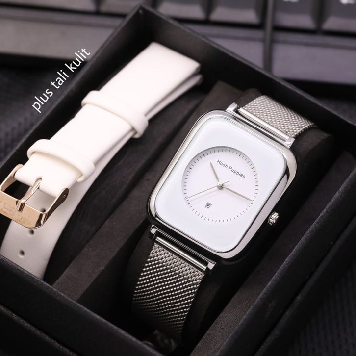 Jam Tangan Wanita Hush Puppies Free Tali kulit Rantai Pasir Tanggal Aktif