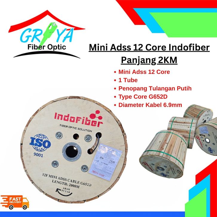 KU Mini ADSS 12 Core 1 Tube Indofiber Kabel Udara Mini ADSS 12c Indofiber G652D 2000M