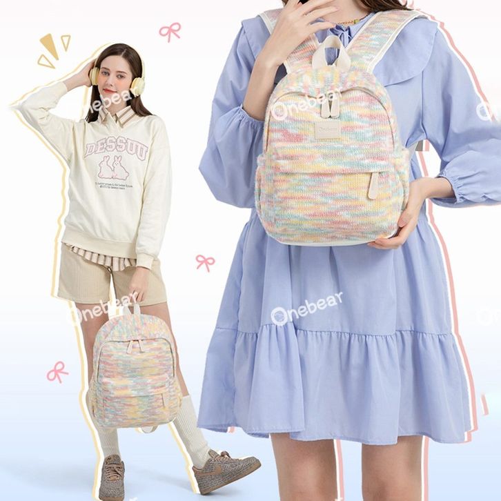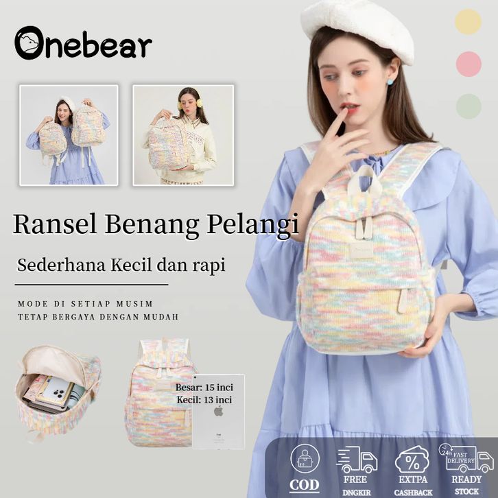 Onebear Tas Sekolah ins lucu Wanita Pelangi Tas Bahu Jepang korea import fashion kuliah Tas Ransel Warna-warni tas ran