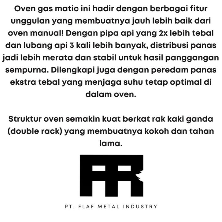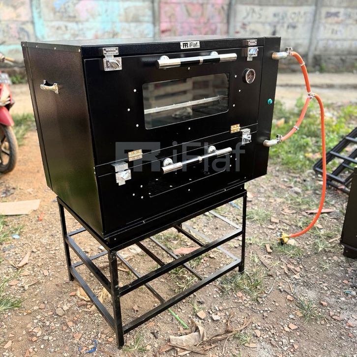 Oven Gas Matic Tanpa Pematik – Anti Karat, Peng-an Atas Bawah, Ukuran 85x55x70 cm + Free Loyang - Packing Kayu-