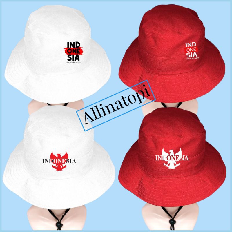 Topi Bucket Rimba Merah Putih Spesial HUT RI Sablon Garuda/Topi Rimba Ukuran Anak Dan Dewasa