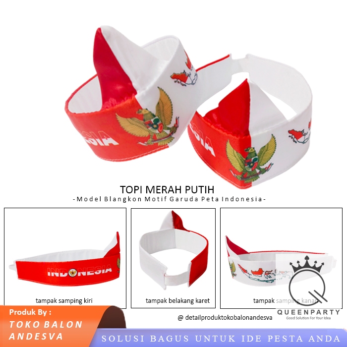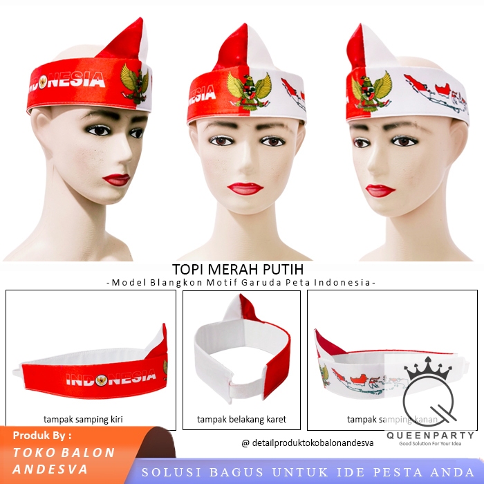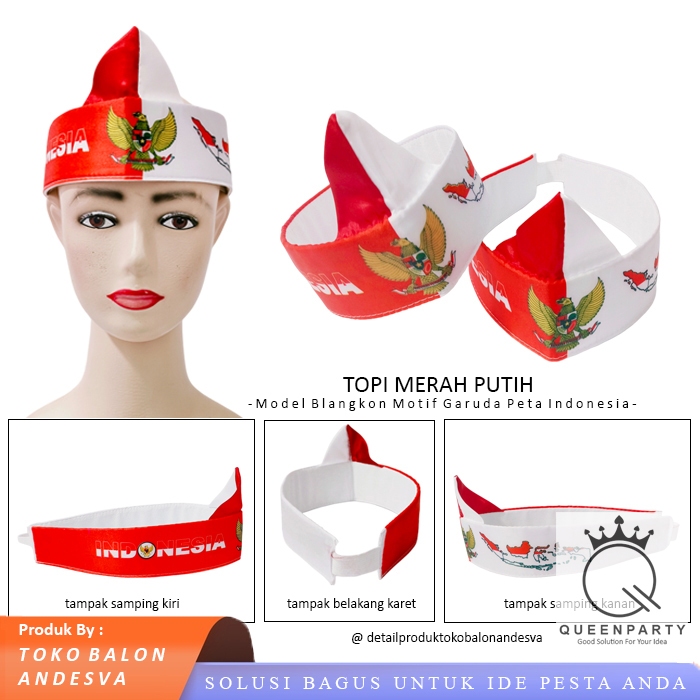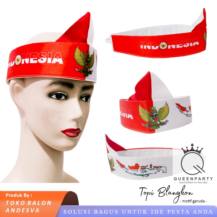 Blangkon Merah Putih Motif Garuda Peta Indonesia / Ikat Kepala Udeng hut ri / Topi blangkon agustus