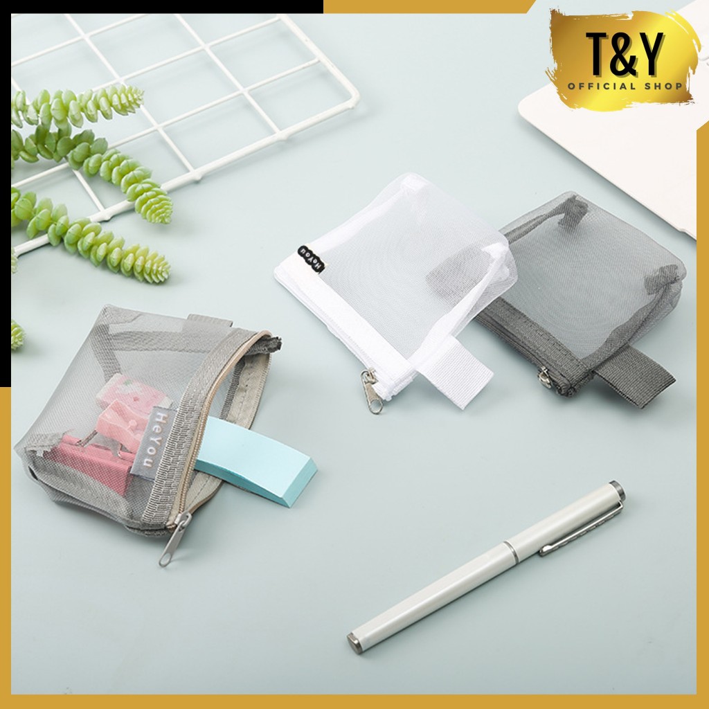 T&Y TAS MAKEUP MINI TRANSPARAN JARING DOMPET KOIN JARING TRANSPARANT POUCH MAKEUP MINI TAS TRAVEL ORGANIZER TAS JARING KOSMETIK DOMPET KOSMETIK SIMPLE LUCU AESTHETIC