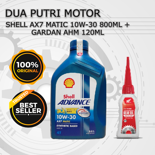 Oli Shell AX7 Matic 10W-30 800ml Orisinil Untuk Semua Motor Matic Paket Oli Shell AX7 dan Gardan Pilih Merk