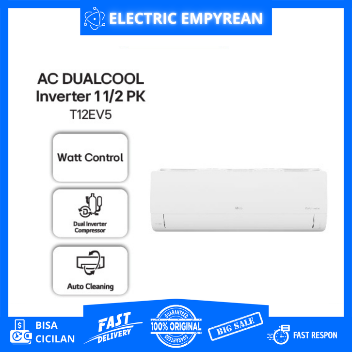 LG Air Conditioner / AC 1.5PK DUALCOOL - Watt Control-New Eco - Auto Cleaning - Dual Inverter Compressor - White -