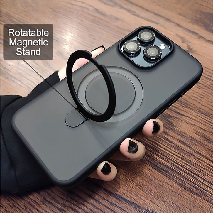 CrashStar MagSafe Magnetic Folding Stand Matte Translucent Hard Phone Case For iPhone 16 15 14 Pro Max Plus 13 12 Pro Ma