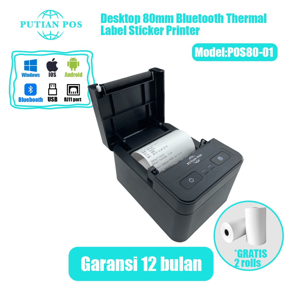 [Mall]PUTIAN POS Desktop 80mm Thermal Printer POS80-01 Label Sticker Printer mendukung RJ11 TANPA DP